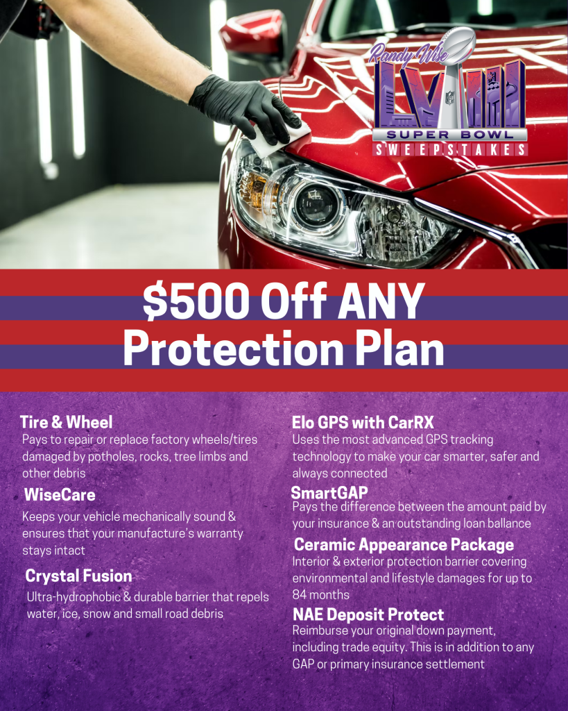 Valued Customers: When you purchase or lease a new vehicle, three individuals have an opportunity to win $500 off of any protection plan which includes: