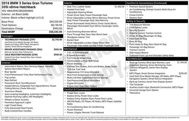 2016 BMW 335i xDrive Gran Turismo for sale, BMW 3 Series AWD hatchback, turbocharged BMW 335i, luxury AWD sport hatchback, BMW with head-up display and navigation, BMW Harman Kardon sound system.