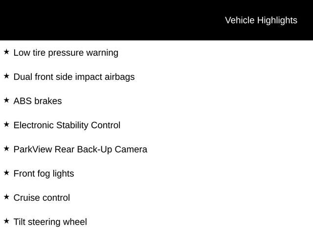 - ParkView Rear Back-Up Camera, ABS brakes, Dual front side impact airbags, Low tire pressure warning