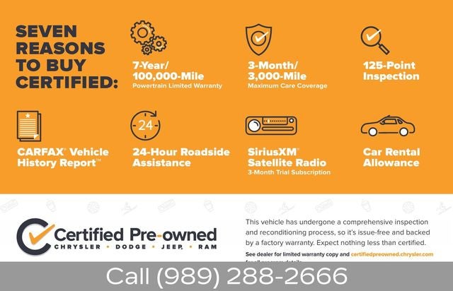 - Vehicles Between 6-10 Model Years and/or 75,001-120,000 Miles. Thorough Reconditioning Process Using Authentic Mopar Parts. 3-Month Trial Subscription for SiriusXM GuardianTM and Satellite Radio