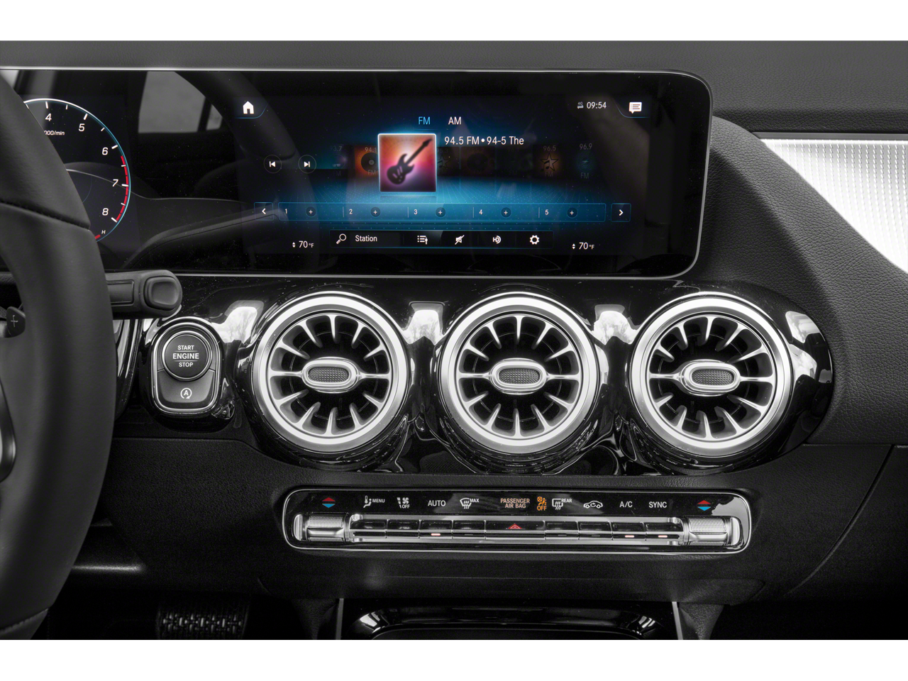 - Radio: Mercedes-Benz User Experience (MBUX) -inc: 7" touchscreen multimedia display, 4 USB-C ports, Bluetooth® connectivity, smartphone integration, voice control w/natural language and 'Hey Mercedes' activation and Mercedes me connect services w/trial period