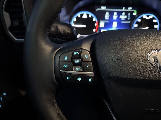 The interior is a sanctuary of modern convenience, boasting heated leather-trimmed sport contour seats, a heated steering wheel, and dual-zone automatic climate control. Staying connected is effortless thanks to the SYNC 3 system with an 8-inch touchscreen, Apple CarPlay/Android Auto compatibility, and a wireless charging pad. Safety is also a top priority, with the Ford Co-Pilot360 Assist+ suite providing Intelligent Adaptive Cruise Control and Evasive Steering Assist.