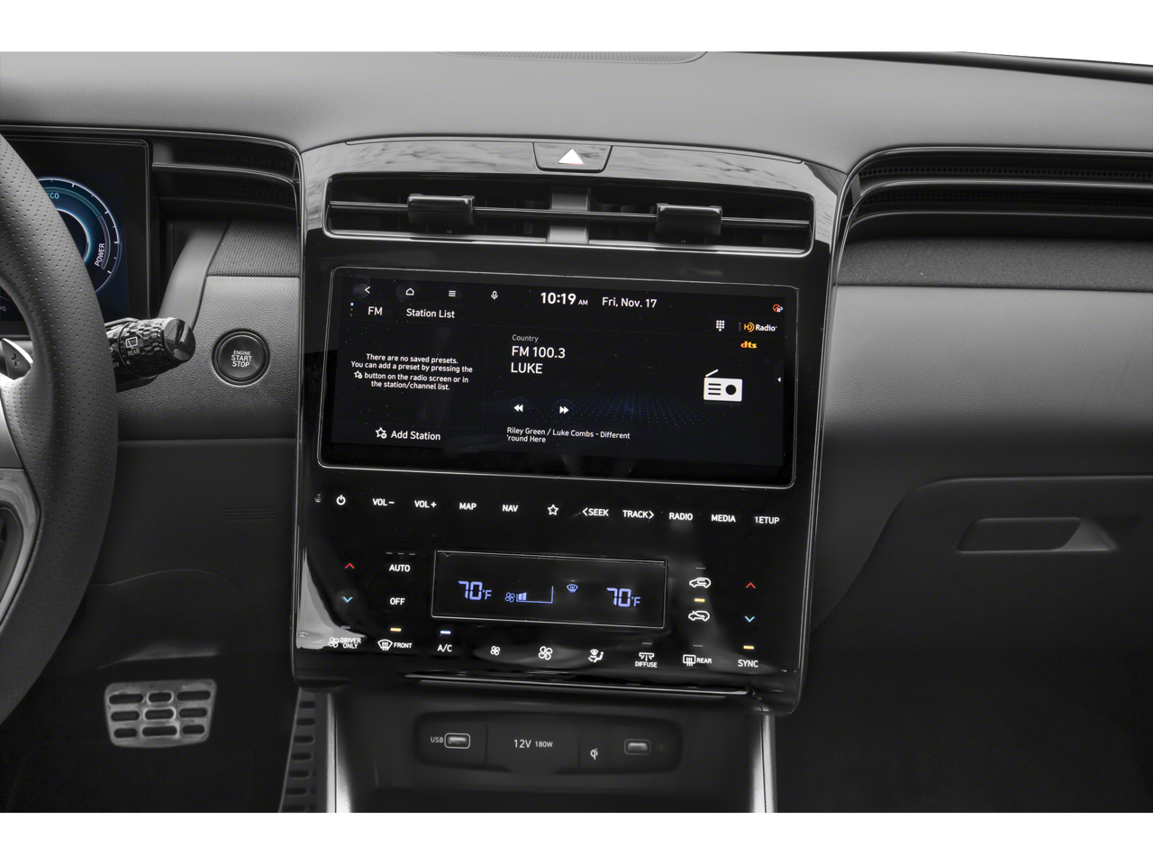 - Radio: Bose Premium w/AM/FM/HD Audio System -inc: 10.25" color touchscreen w/onboard navigation and traffic flow including incident data via HD Radio (HERE), digital 8-channel amp (w/custom equalization, digital signal processing, and dynamic speed compensation) and 8 speakers (1 twiddler on center of instrument panel, 2 tweeters, 2 front door, 2 rear door, 1 woofer on rear quarter panel), SiriusXM satellite radio (3-month trial subscription), BlueLink+ connected car, Apple CarPlay and Android Auto integration, Dynamic Voice Recognition, map and multimedia software OTA update capability and USB connectivity